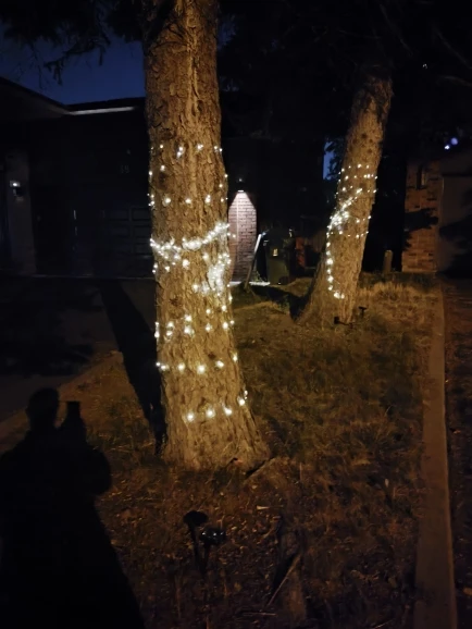 Wrap the light around the tree, and it's pretty bright at night, can last 3 to 4 hours, and switch to different modes constantly. Very good product.